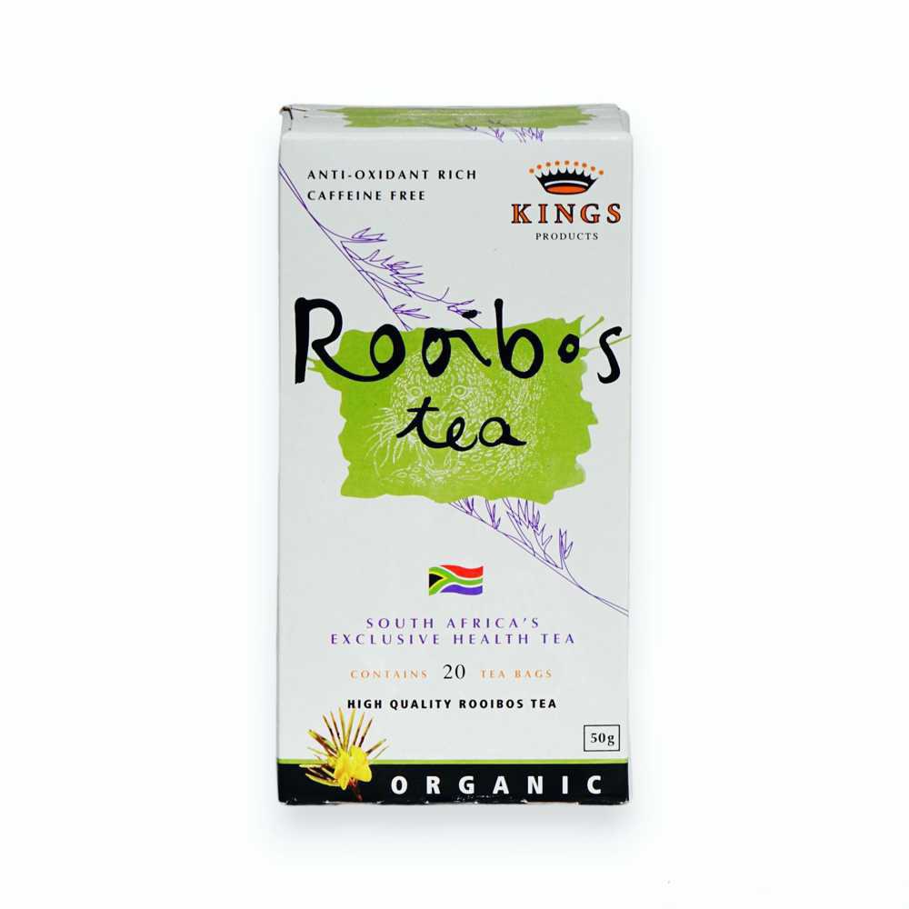 King's Products Rooibos kann heiß oder kalt genossen werden, ist koffeinfrei und vollgepackt mit Mineralien wie Eisen, Kalium, Zink, Magnesium und Mangan.